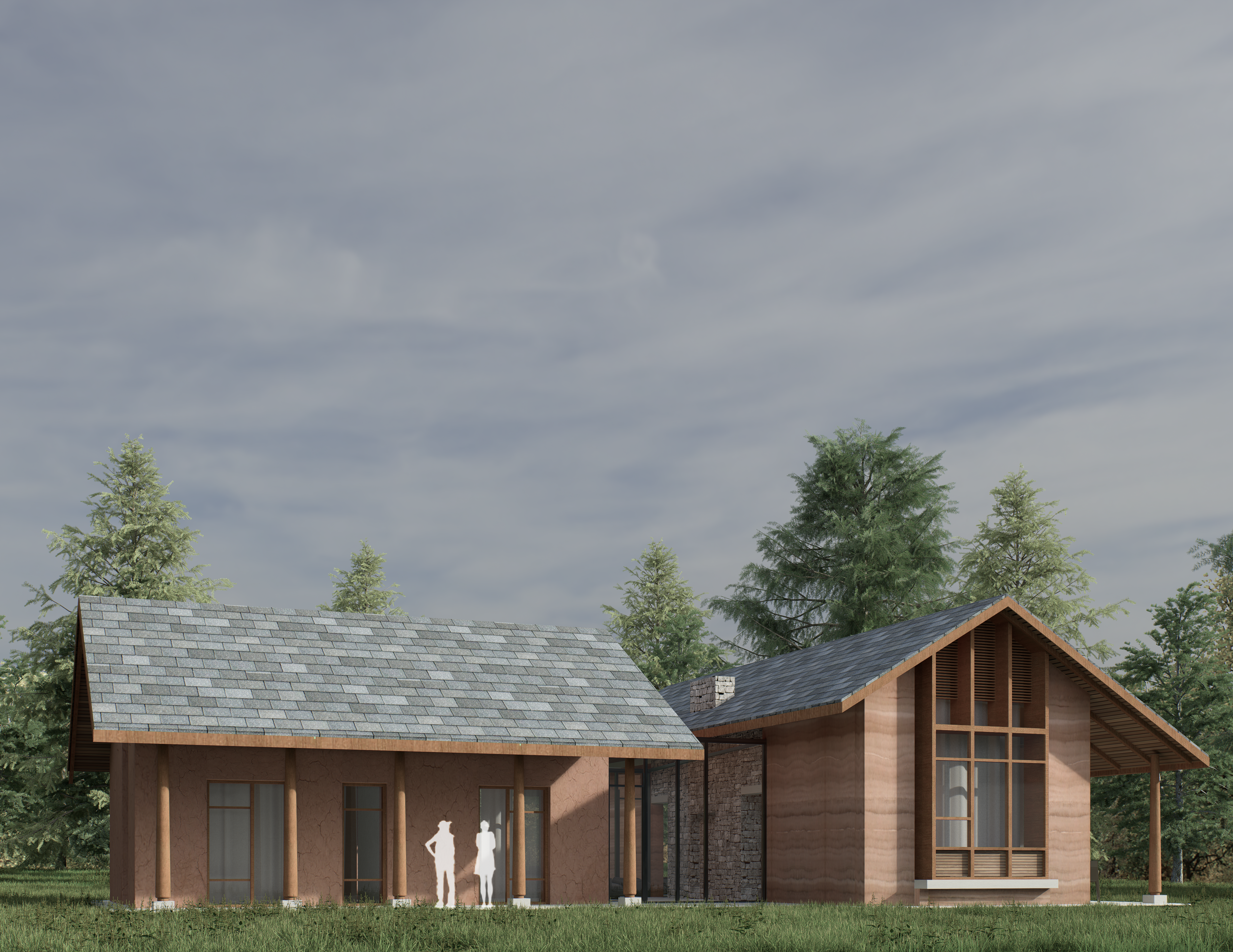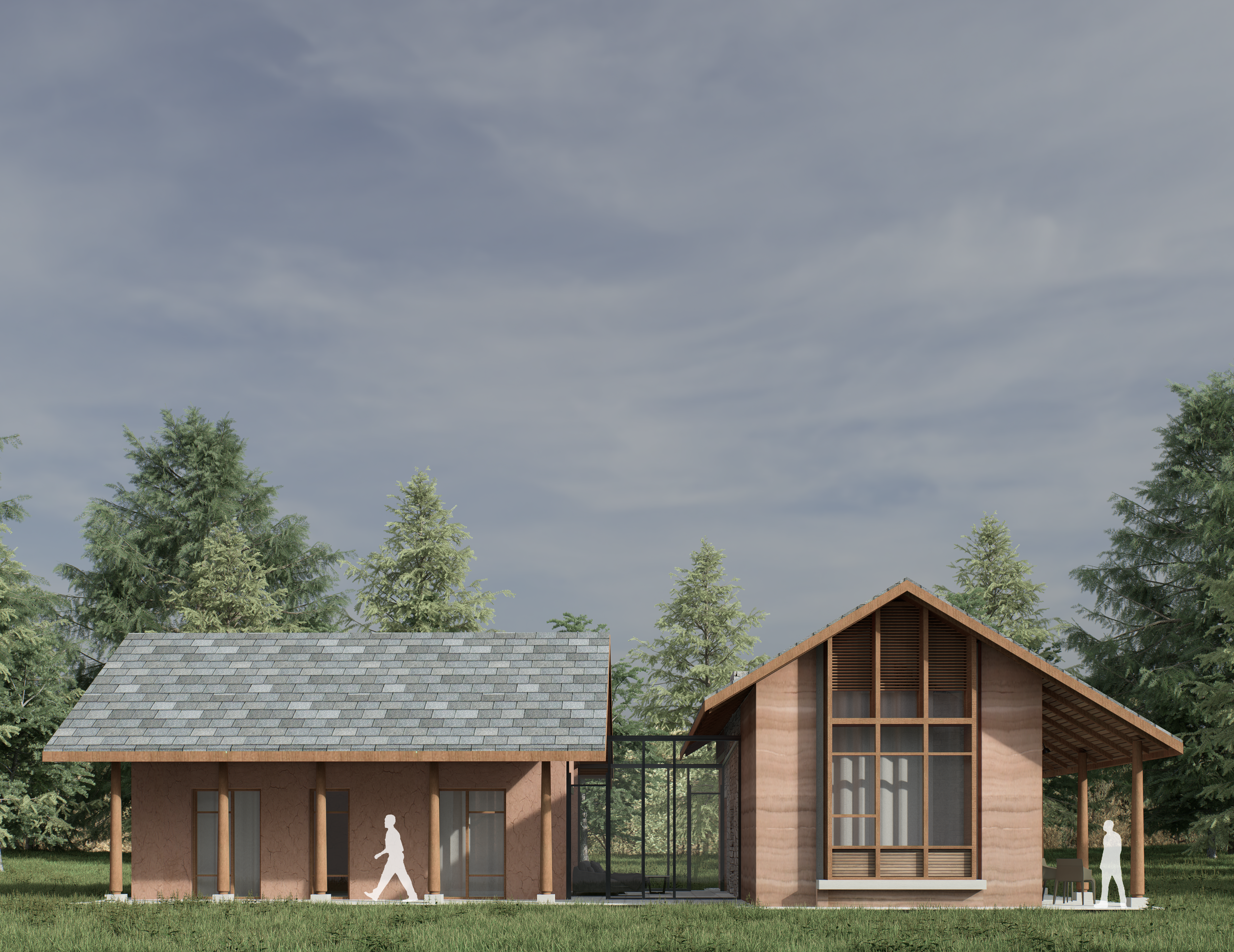 Our vision was to create a homestay composed of three elements: the original stone and mud structure, a newly built rammed earth extension, and a glass vestibule/foyer that seamlessly connects the old with the new.