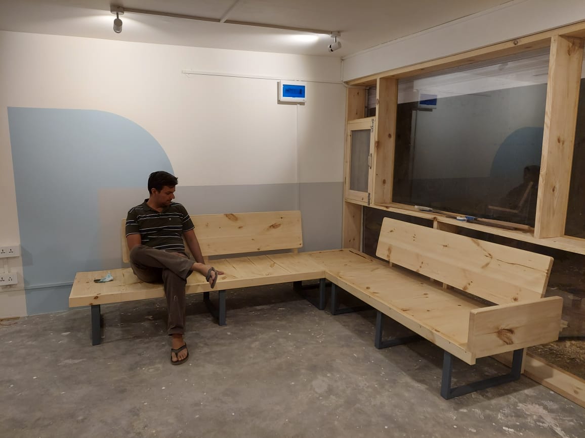 This on-site fabrication approach allowed for flexibility, material efficiency, and seamless integration with the overall interior palette. The resulting furniture is robust, minimal, and intentional, reflecting the functional ethos of the office it was designed for.
